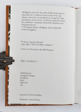 Childish, Billy (pseudonym of Steven John 'Bill' Hamper). A three volume first edition collection of poetry published 2003, comprising: evidence against myself, calling things by their names and the boss of all english riters - poems 1996 - 2002. Published Hangman Books. Publisher's original full cloth bindings in orange & green, each with woodcut illustration stamped to front board, one a hangman's noose, the other a skull and crossbones. Each illustrated with woodcut illustrations by the artist. 8vo.
