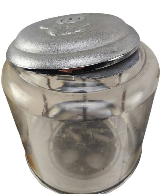 Beaver - four vintage 20p coin operated cream colour sweet shop candy vending machines. Each confectionary dispenser with a chrome branded locking system atop over a clear plastic tub. Chrome mechanism to front missing. Some missing the chrome flap to front. No key present. Each measures approx. 40cm tall x 20cm in diameter.