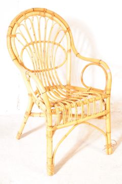 A 20th Century circa 1970s vintage bamboo chair having rounded backrest with fan like design. Measuring approx. 94cm x 56cm x 54cm