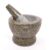 A large volcanic rock style molcajete / pestle and mortar. Raised on a rounded base, with large bowl atop. Measures approx. 14cm x 21cm.