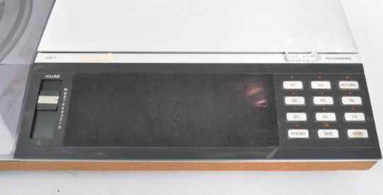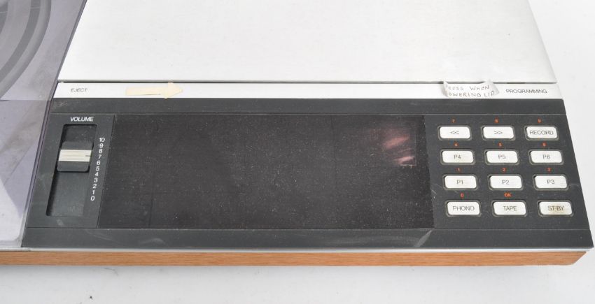 Bang & Olufsen - Danish Maker - Beocenter 7002. A vintage 20th century record player turntable. With display, smoked plastic and teak veneer body.