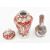 A collection of five pieces of 18th, 19th & 20th century Japanese Imari porcelain. The lot comprising a pair of baluster vases with blue and iron red design featuring central fan and bird design; a lidded red and green vase with blossoms; a small Meiji period small enamelled vase; and an 18th c. tea bowl with bronze rim, internal red and gilt floral design, with Imari blue, red & gilded hand painted external pattern. Tallest measures approx. 15cm tall.