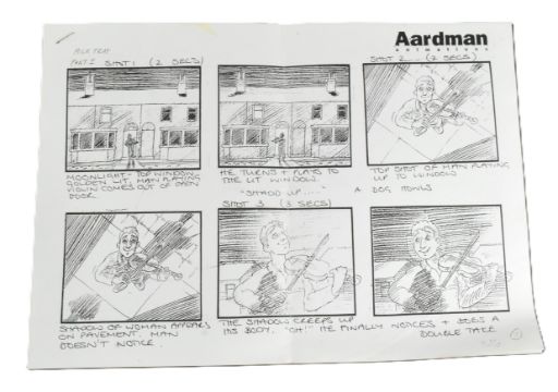 Aardman Animations - Coronation Street (Idents 1996-2002) - a collection of x4 Aardman Animations storyboard artwork pieces, predominantly for their Coronation Street idents. Includes ones titled 'Glaziers', two 'Telephone Engineer,' versions and the storyboards for a 'Milk Tray' advert. All A4, in production used condition.