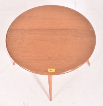 Ercol - Model 308 - a retro circa 1970s drop leaf circular coffee - occasional table. The table raised on tapered legs with chamfered edge table top.