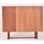 A retro mid 20th century teak and glazed display cabinet / bookcase. Slender rectangular form having a twin sliding door cabinet section with glass shelevs and mirror back. Flanked to the right by a concealed cupboard. All raised on stright supports.