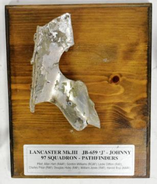 A collection of WWII Second World War RAF Royal Air Force cockpit instruments comprising; Ferranti volt meter, Smiths Desynn Position Indicator and an Amp gauge together with a Lancaster  MKIII JB-659 aircraft piece with certificate of authenticity.