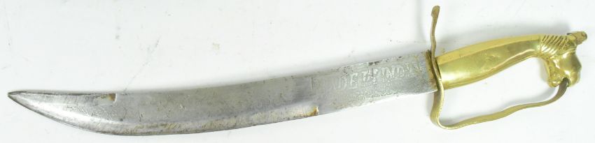 A large vintage Indian made Nepalese / Gurkha Kukri knife together with x2 smaller Indian daggers with lion / dragon head hilts. Kukri measures approx 64cm.