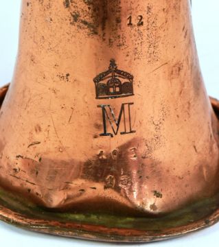 A WWI First World War Imperial German Kaiserliche / Naval Officers bugle. Copper and brass construction imperial crown and M for Marine on the bell.