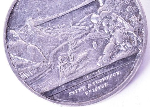 Local interest - a 19th Century Clifton Suspension Bridge medallion struck to celebrate the opening in 1864. Features a view of the bridge over the gorge with bridge details to reverse. Makers Payne & Thompson, Bristol.
