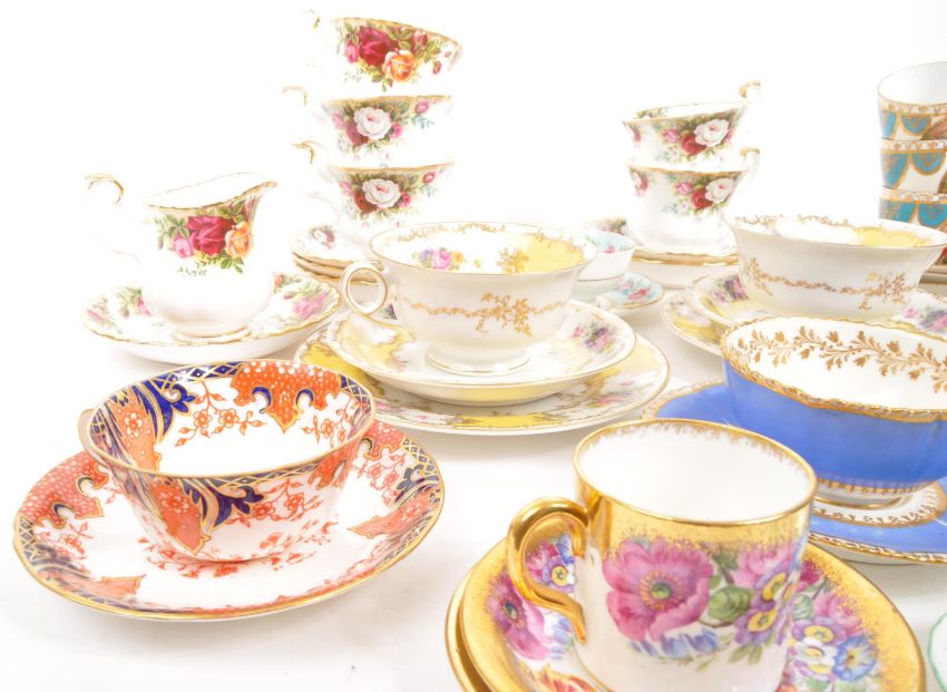 A collection of assorted fine bone china cabinet cups and saucers to include Royal Crown Derby, Royal Albert, Hutschenreuther (Germany) and others.