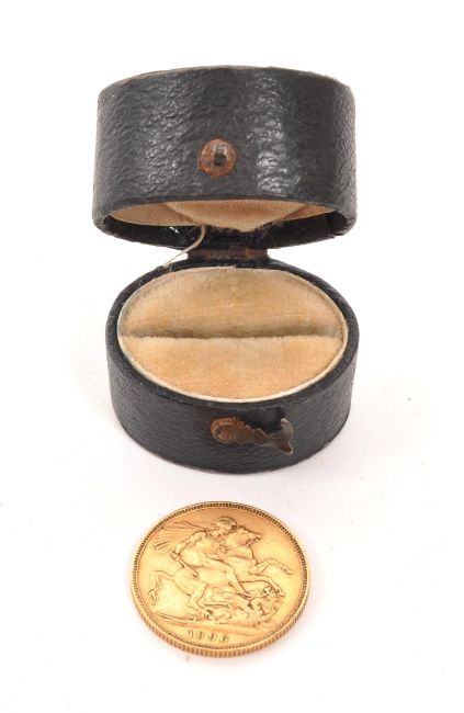 A Victorian 1896 full gold sovereign coin. The Victorian sovereign having the Queen Victoria old head to the obverse and St George on horseback to the reverse to vertical milled edge. Measures 2.2cm x 2.3cm. Weighs 8.0g. All weights, measurements and sizes are approximate.