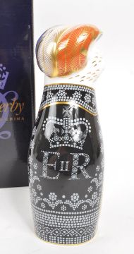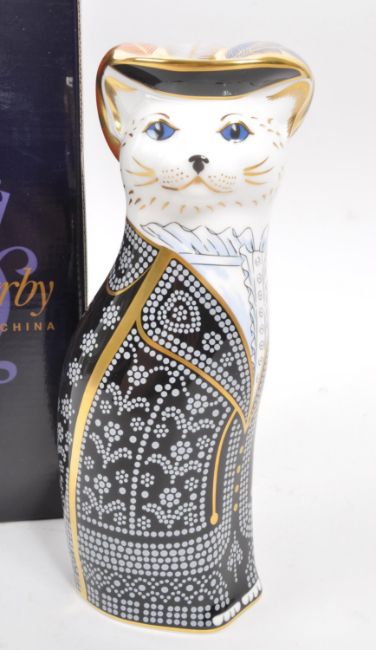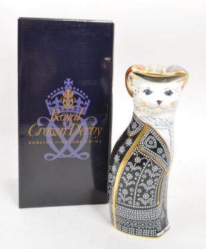Royal Crown Derby - A porcelain china limited edition Royal Crown Derby ' Pearly Queen ' cat paperweight figurine. The Diamond Jubilee Pearly Queen cat to celebrate the Diamond Jubilee of H M Queen Elizabeth II 1952-2012. Limited edition number 181 / 350. With gold stopper to base and within original box.