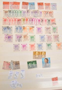A collection of 19th and 20th century British and Foreign postage stamps. The collection to include franked and unfranked examples, from locations such as India, Sri Lanka (Ceylon), Portugal, Kenya, Eswatini (Swaziland), United Kingdom, Jamaica, and Australia amongst others. To include a circa 1859 Natal 3d blue stamp, a Hong Kong Victoria Two Cents stamp, a circa 1969 Indian One Anna stamp, and other examples.
