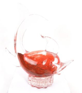 A collection of five mid Century studio art glass items in the form of animals. Copmrising of a Romanian glass fish, another fish figure, Murano bird, and two bowls one in the form of a swan.