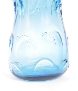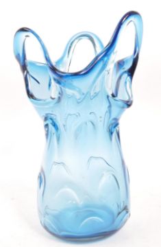 Jan Beranek - A vintage 20th century studio art glass vase. In a blue colourway with pierced decoration, shaped mottled body on a circular base. Makers symbol present.