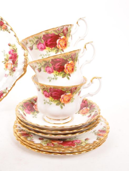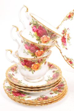 Royal Albert - Old Country Roses - A 20th Century vintage porcelain china Royal Albert tea service in the Old Country Roses pattern. Comprising of 6x teacups, 6x saucers, small / side plates (trios), sugar bowl and milk jug.
