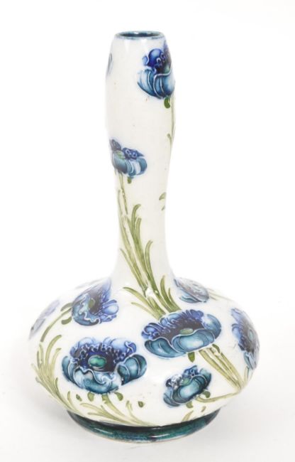 MacIntyre - Florian Ware - W. Moorcroft - An early 20th century circa 1903/04 W. Moorcroft signed James MacIntyre & Co. Florian Ware poppy pattern porcelain vase. The vase having a white ground, with green and blue handpainted poppy design. Signed to base W. Moorcroft.