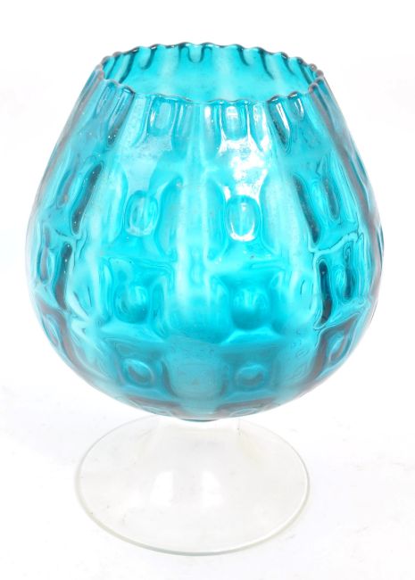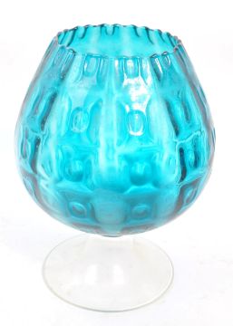 Empoli - A large mid Century Italian retro optical glass. The glass in blue colourway with repeated circular motif pattern, in the shape of a brandy glass.