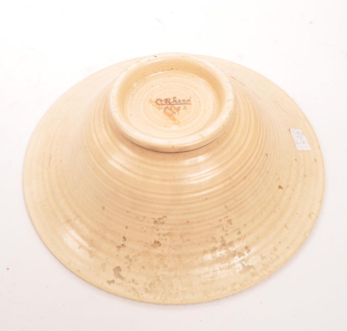 Charlotte Rhead - A 20th Century circa 1930s Art Deco ceramic Crown Ducal centrepiece bowl designed and signed C. Rhead to base. Having mottled brown ground with orange foliate fruit decoration.