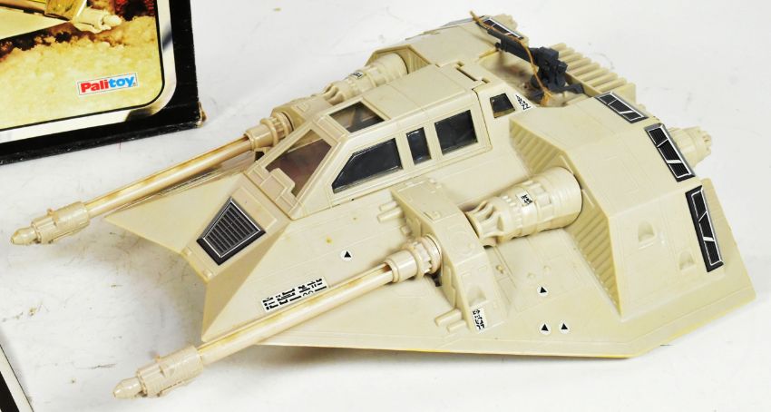 Star Wars - an original vintage 1980 Palitoy made Star Wars action figure playset ' Rebel Armoured Snowspeeder Vehicle ' from the Empire Strikes Back. 100% complete, including the harpoon, battery cover, canopy and main guns. With original instructions present. Pink sky variation Empire Stikes Back box. Playset EX to NM, outer box G+ to VG.
