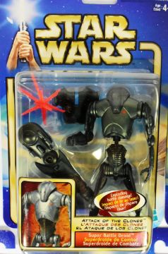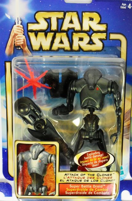 Star Wars - Attack Of The Clones - a collection of x7 2002 Hasbro AOTC MOC carded action figures. Comprising: Kit Fisto, Super Battle Droid, Anakin Skywalker, Yoda, Obi-Wan Kenobi, and Clone Trooper. All factory sealed, contents mint and unopened. As new.