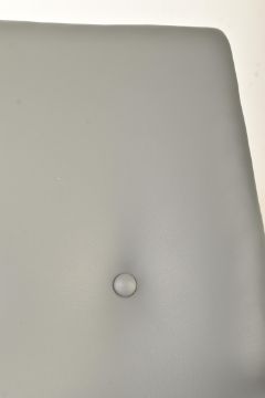 Peter Hayward for Vanson - a retro 20th century Scandinavian grey leather & teak office / lounge arm chair. The elbow chair having a buttoned back over S scrolled elbow rests. padded seat below, all raised on turned tapering supports.