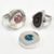 A silver necklace and two silver rings. The lot to include a silver modernist necklace with hook clasp, marked sterling to verso. A contemporary silver ring with two interchangeable circular ring heads, set with coloured glass cabochon, unmarked but tests indicate silver. A silver and bezel set geode ring with squared shank, marked 925. Necklace inner diameter measures 12.7cm x 14cm. Interchangeable ring size R.5 - S. Goede ring size M.5 - N. Lot total weight 46.7g. All weights, measurements and sizes are approximate.
