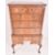 A Queen Anne George III crossbanded flame mahogany chest of drawers on stand - tallboy. The chest having a flared top over a bank of two over three drawers with brass batwing escutcheons and handles. Raised on stand with central drawer flanked by squared drawers and shaped apron below. Cabriole legs with pad foot terminals