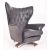 G-Plan Blofeld - Model 6250 designed by Paul Conti - a retro mid 20th century teak and leather swivel office lounge batwing armchair. The armchair having a fan shaped buttoned back over scrolled armrests and cushioned seat. All in black leather upholstery. All raised on four arm wooden supports with castors to ends.