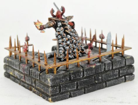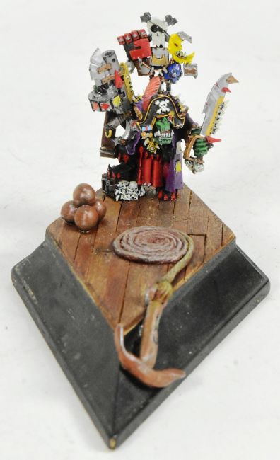 Warhammer - x2 original Games Workshop Warhammer table top war gaming models comprising Chaos Skulltaker and Ork Pirate Kaptin Badrukk. Both all metal examples mounted on custom scenic bases, one wooden, the other foam.