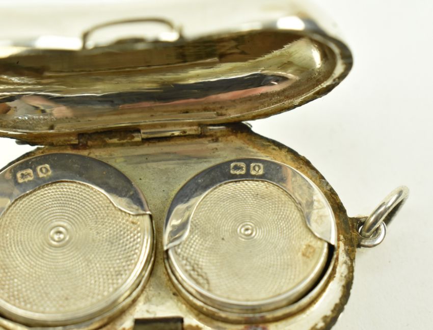 George V hallmarked silver sovereign holder. Engine turned with monogram cartouche. Hallmarked Birmingham 1913, sponsors mark for Boots Pure Drug Company.