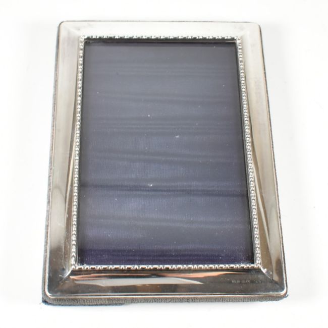A contemporary hallmarked silver easel photograph / picture frame. Hallmarked Sheffield and stamped 925, sponsors mark Robert Carr.
