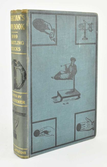 Cremer, William Henry (ed.). The Magician's Own Book, Recreations in Chemistry, Acoustics, Legerdemain, Electricity, Performances with Cups and Balls, Eggs, Hats, Coin, Books etc. A new edition with 200 practical illustrations. Publ. John Grant, Edinburgh. Publisher's orig. decorative blue full cloth binding with black blind stamped illustrations to front board and spine, gilt titles to spine, ownership inscr. in pencil to top edge & ffep, some light bumping to extremities, spotting to edges & to bottom of first and final leaves. An interesting early 20th century new edition on magic and magic tricks. 8vo.