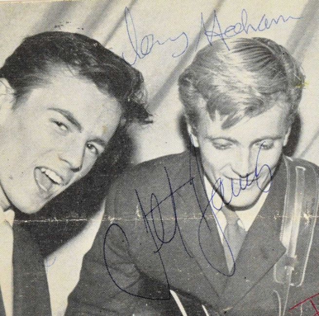 The Shadows - original vintage 1960s (1961) tour programme from the Granada at Walthamstow. Signed on the rear page by all members - Hank Marvin, Bruce Welch, Jet Harris and Tony Meehan. Undedicated, signed in blue / red ink respectively. Folded, some light wear.