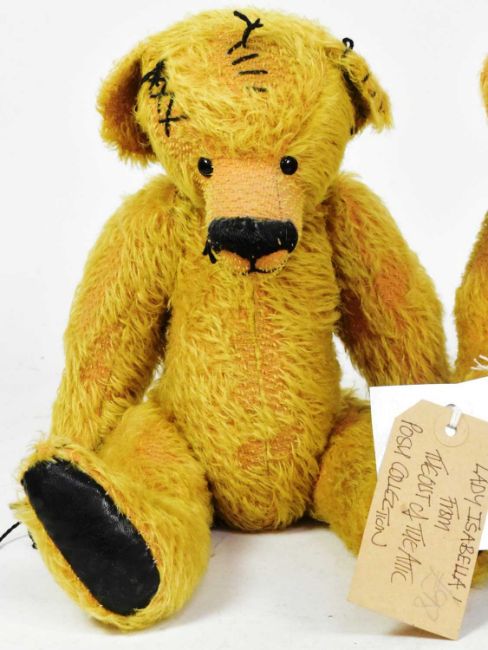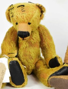 Teddy Bears - x4 vintage English soft toy teddy bears. Fully jointed heavy pellet filled examples with black stitching and some with felt and leather padded paws. Largest measures approx 45cm.