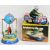 Tinplate Toys - a collection of vintage tinplate clockwork / mechanical toys comprising a telescopic pop-up sky scraper building with x4 bendable monkey figures, friction motor white saloon car with pink roof, clockwork wind up motorcycle, West German made globe carousel and x3 clockwork cars with baseplate.