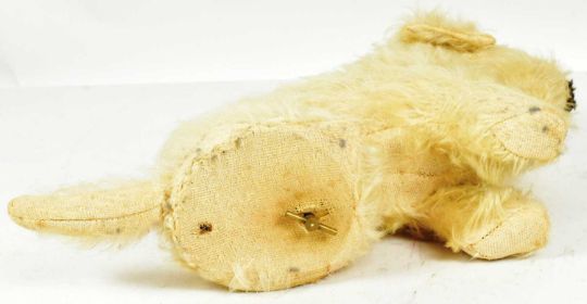 Teddy Bears - a vintage Chad Valley soft toy teddy bear in the form of a white mohair dog. Firmly stuffed with remains of original label on the base. Musical mechanism AF - previously played Auld Lang Syne. Measures approx 21x34cm.