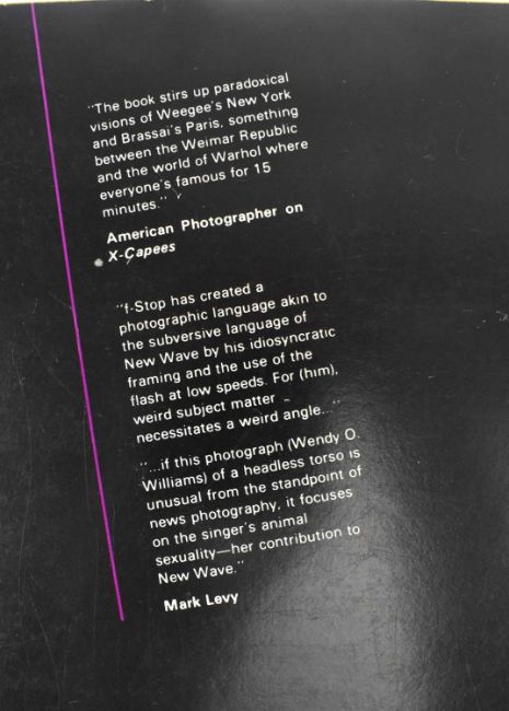 Punk history. Two vintage 1980s American photographic books, comprising 1982 Weird Angle by f-Stop Fitzgerald, and 1980 X Capees a San Francisco Punk Photo Documentary by Raye Santos, Richard McCaffree, f-Stop Fitzgerald and Howie Klein, signed by Santos and McCaffree to the title page. Including photographs of Iggie Pop, the Sex Pistols, David Bowie, the Talking Heads, the Mutants & others in black and white. Publisher's orig. wraps, oblong 8vo.