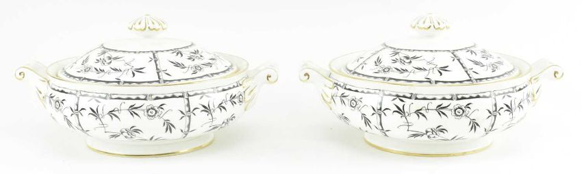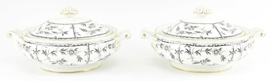 T Goode & Co Ltd / Hammersley & Co - Black Bamboo - a 20th century transfer printed fine bone china part dinner service. The service to include deep plates, large dinner plates, two tureens with lids, side plates, gravy boats with saucers, one large serving platter.