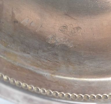 An early 20th century Art Nouveau WMF silver plated centrepiece pedestal bon bon bowl on stand. The electroplated bowl with embossed floral design to rim, raised on column stand on stepped circular base with beaded detail. Unmarked.