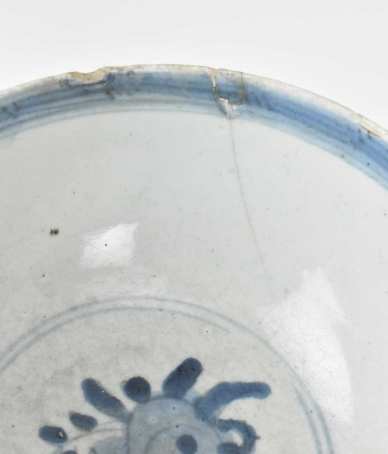 The ginger jar has a crack on the body and the bowl has a couple of small chips to the rim.