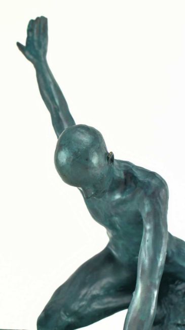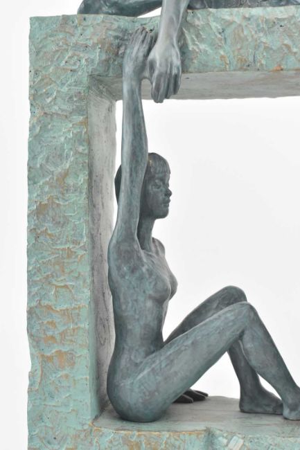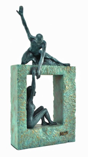 Angeles Anglada - Equilibrium - a stone sculpture. The hand painted bronzed sculpture from the Couple series, produced in A. Anglada's studio Artestilo in Madrid, Spain. Repair to the hand of the man.