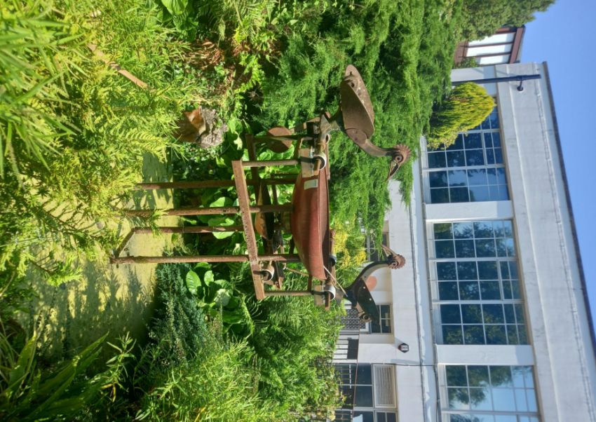 (ARR) Former Bristol Zoo Gardens - Jason Lane (British b.1970) - 'Mechanical Money Collector' - the original sculpture situated outside Bug World, in a small pond. Installed in the early 2000s, the sculpture moves when coins are thrown into the central bowl. Both birds dip their heads, and the money falls into the pond for later collection. Metal construction. Total size approx: 190cm tall (from top to end of leg) x 150cm wide x 90cm deep.Note: this lot will be available for collection / courier from our Bath saleroom (BA1 7LR)*ARR may apply to this lot - see notes regarding Artist Resale Rights