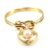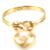 A gold knot ring with pearl set heart pendant. The yellow gold square knot ring having a heart pendant set with a single cultured pearl. Markings to inner shank illegible. Surface tests indicate gold. Size N. Weighs 1.7g. All weights, measurements and sizes are approximate.