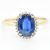 A hallmarked 9ct gold, kyanite and topaz cluster ring. The 9ct gold ring having a central four prong set oval cut kyanite surrounded by a halo of shared claw set round cut white stones to polished 9ct yellow gold shank. Hallmarked for Birmingham, 2018. Size R.5. Weighs 2.5g. All weights, measurements and sizes are approximate.