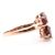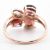 A hallmarked 9ct rose gold garnet spinel and diamond ring. The ring set with two oval and one round mixed cut stones with a white gold pierced leaf set with ten shared claw set round brilliant cut diamonds to birfurcated shoulders and tapered shank. Hallmarked for Birmingham, 2018. Size Q-Q.5. Weighs 2.9g. All weights, measurements and sizes are approximate.