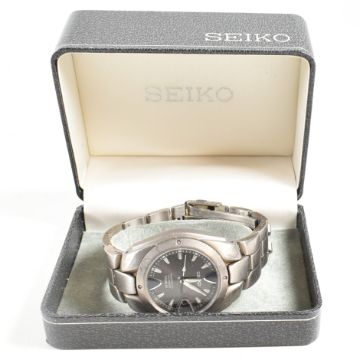 A Seiko perpetual calendar titanium wristwatch. With spare link. Measures 11cm. Weight 80.38g. All weights, measurements and sizes are approximate. All watches are sold as untested, therefore without warranty.