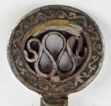 An Islamic iron ka'abah lock & key with intricate carving of Islamic calligraphy.