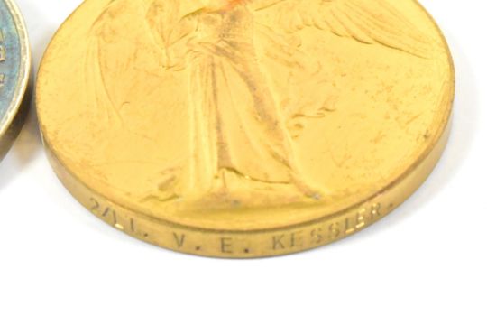 WWI Medals - trio awarded to Second Lieutenant Victor Emanual Kessler of the 1st Regiment, South African Infantry. Died 18th October 1916, age 25. Comprising: 1914-15 Star (SJT V. E. KESSLER. 7TH INFANTRY.), War Medal (2/LT V. E. KESSLER.) and Victory Medal (ditto), with ribbons. Supplied with research from the South African War Graves Project. Kessler was killed in action after attacking Snag and Tail Trenches.