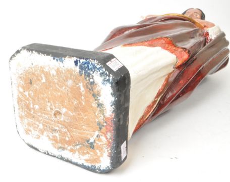 A large vintage 20th century plaster Jesus mantel figure sculpture, hand painted with gilt detailing to the base and clothes. Artist unknown. Measuring approx. 61cm tall.